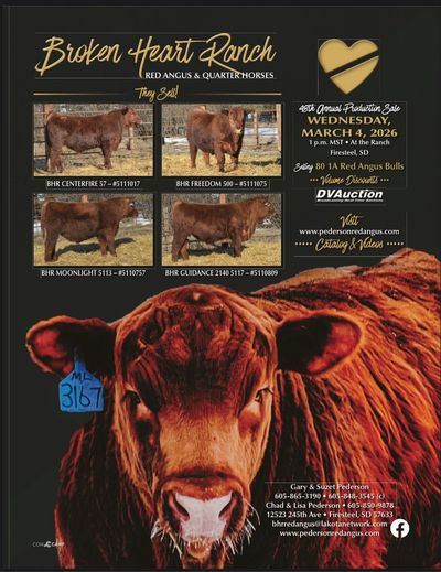 We invite you to our 48th Annual Red Angus Bull Sale on March 4, 2026 here at the ranch.